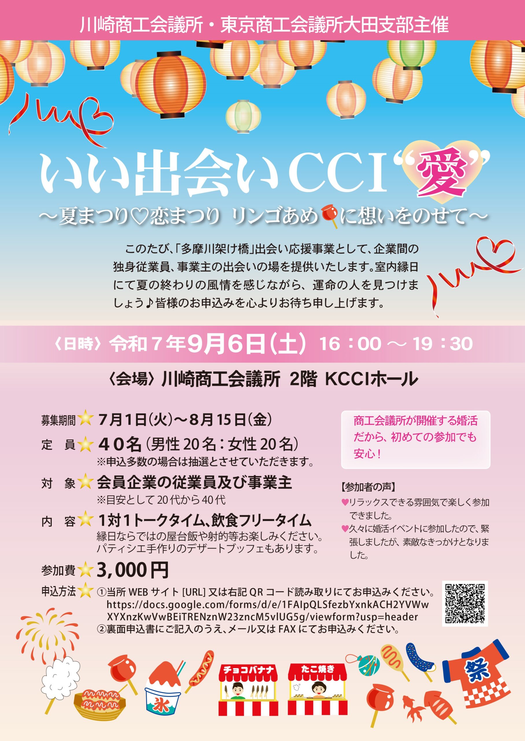 詳細は、https://www.kawasaki-cci.or.jp/event/event_konkatsu0624/を参照。