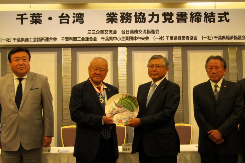 千葉県商工会議所連合会(佐久間英利会長・千葉商工会議所会頭・千葉銀行)など5団体は、台湾の2団体と経済発展を目的とする業務協力の覚書締結式を9月9日に行った。千葉県と台湾の企業間の支援に努め、産業・貿易ビジネス交流を促進させることにより、両地域の経済発展に寄与する。この目的を達成するために、それぞれの団体が実施する事業などに関して情報交換や連携の協力を行っていく。