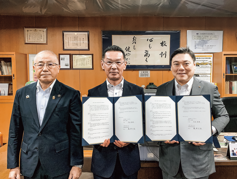 協定では①同校が必要とする講師の派遣や講座、実習などその他教育活動に関する事案②同校の推進する総合的な探求教育などに対する情報提供、実習などその他教育活動③同所の推進する地域社会の健全で持続的な地域づくりに関する事業――の3点について協力することが盛り込まれている。