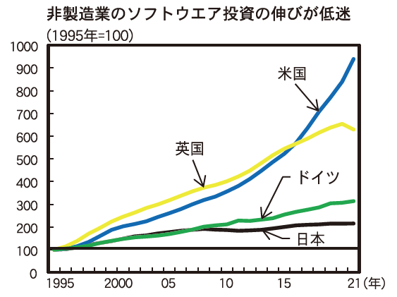 労働生産性の向上については、米国・英国・ドイツと比較して低迷しているソフトウエア投資をはじめとする無形資産(研究開発、著作権、デザインなど)への投資を積極的に進める必要性を指摘。特にソフトウエア投資による業務の効率化や省力化、事務作業の軽減の推進を提示した。