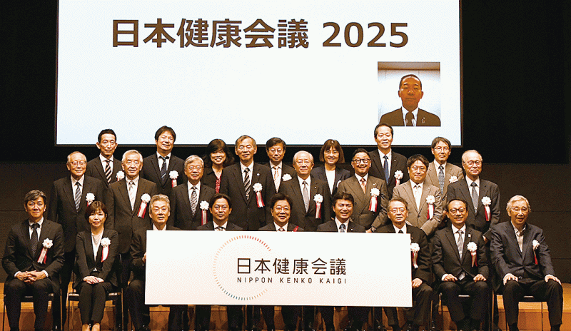 日本商工議所をはじめ、経済団体や保険者、自治体、医療関係団体などが参加する日本健康会議は10月14日、「日本健康会議2025」を開催した。当日は、共同代表を務める日商の小林健会頭、全国健康保険協会の北川博康理事長をはじめ、来賓として福岡資麿厚生労働大臣(当時)、加藤勝信財務大臣(同)、古賀友一郎経済産業副大臣(同)が出席。会議では、2025年までに「健康づくりに取り組む5つの実行宣言2025」の宣言自治体を1500市町村以上とする目標に対する達成状況の報告などが行われた。