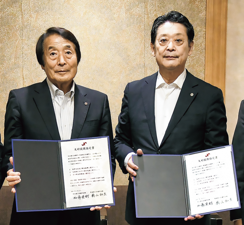 両所は協定により①産業交流および観光振興②災害時における相互支援――の2点について連携する。具体的な支援、交流などの内容については今後両所で協議を進める。