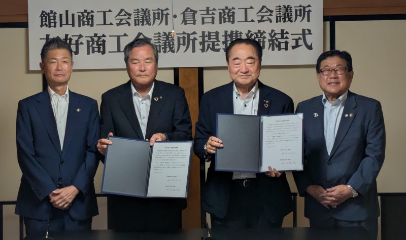倉吉商工会議所(鳥取県、大田英二会頭・チュウブ)および館山商工会議所(千葉県、安田信之会頭・昭和運送興業)は、9月7日、「友好商工会議所提携」を締結した。二つの商工会議所が、広域観光や経済・文化面の交流と情報交換を通して理解を深め、各管内の商工業の振興・発展に貢献し、災害発生時には相互に支援することなどが目的。