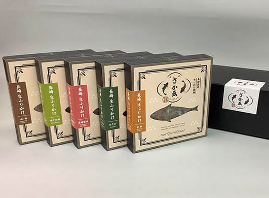 「商品のパッケージデザインとロゴは、旅行で訪れた飛騨高山ののれんが連なる街並みからヒントを得ました。中身のふりかけは、幼い頃に食べた母手づくりのいりこの甘露煮をイメージしました。これなら子どもでも食べられると思いましたし、長崎県はいりこの生産量が日本一でかつ高品質なので」と、同社の土井榮一社長は話す。