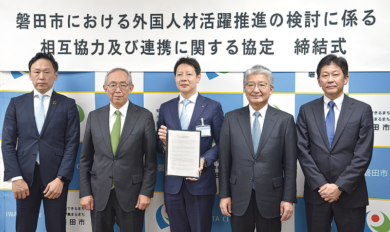 磐田商工会議所(静岡県)は11月11日、磐田市、静岡産業大学、静岡銀行、浜松磐田信用金庫、SFGマーケティングと「磐田市における外国人材活躍推進の検討に係る相互協力及び連携に関する協定」を締結した。同協定は、同市における外国人材の受け入れの定着と推進、多文化共生社会の実現ならびに同市の認知度と魅力の向上が目的。それぞれが保有する知見やネットワークを生かして協力し、外国人材の活躍推進を目指す。
