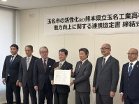 玉名商工会議所(熊本県、山田邦男会頭・やましょう不動産)、玉名市、玉名市商工会、肥後銀行、玉名青年会議所、熊本県立玉名工業高校は1月19日、「玉名市の活性化及び熊本県立玉名工業高校の魅力向上に関する連携協定」を締結した。協定内容は、①同校の魅力向上および教育振興に関すること②地域産業を担う人材育成(キャリア教育)および確保に関すること③地域産業の振興および活性化に関すること④地域社会の発展および地域課題の解決に関すること⑤その他、本協定の目的達成に資すること―の5項目。具体的には、玉名の企業人との懇談など、同校生徒が地域の魅力や課題を学ぶ機会を設ける。さらに、連携団体のコーディネートにより、企業でのインターンシップを実施するほか、探求学習、就職活動の支援も行う。