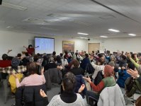浦安商工会議所(千葉県、熊川賢司会頭・ベアビル)女性会(宮沢幸子会長)は2月9日、浦安商工会議所3階会議室で「歌って・動いて・元気になろう! 歌声広場よりみち」を開催、約80人が参加した。このセミナーは、「楽しく、長く、自分らしく」をテーマに、高齢者の「健康寿命」の延伸を目的として開催され、2部構成で実施された。第1部では、「歌声広場よりみち」所属で、介護福祉士の前田明子氏による高齢者向け介護予防の講演と、参加者参加型の健康体操を実施。浦安市長の内田悦嗣氏も参加し、会場一体となってマツケンサンバを歌い、踊る場面もあった。第2部では前田氏の歌唱と、アコーディオン奏者の中西基起氏の演奏により、全8曲を披露。参加者も一体となって歌い、笑顔で体を動かす時間となった。同女性会は今後も地域の健康増進と交流促進につながる事業を継続して実施していく。