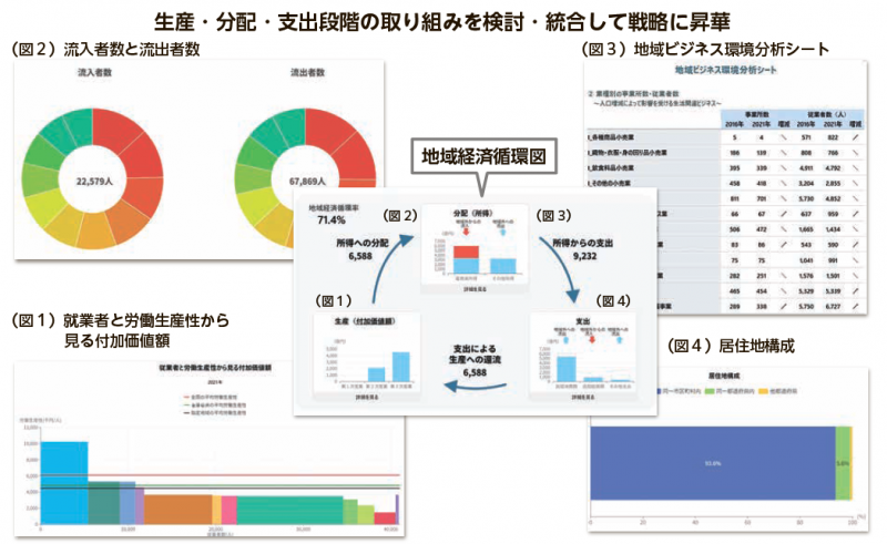 あらゆる地域リソースが限られてくる今後は、地域経済循環を強く・太くするという視点で、生産・分配・支出のそれぞれの段階における取り組みを検討し、これらを統合して戦略に昇華していくことが求められます。