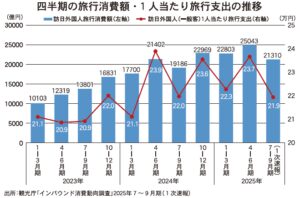 観光庁は10月15日、「インバウンド消費動向調査」2025年7~9月期(1次速報)の結果を公表した。