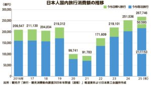 25年国内旅行・観光消費 前年比6.4%増26兆7746億円 観光庁