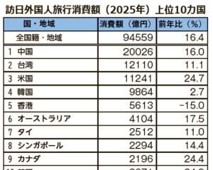 25年インバウンド消費 過去最高の9兆4559億円 観光庁