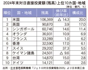 独立行政法人日本貿易振興機構(ジェトロ)は12月26日、対日投資に関する包括的な報告書「ジェトロ対日投資報告2025」を公表した。