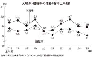 厚生労働省は12月23日、「令和7(2025)年上半期『雇用動向調査』」の結果を公表した。